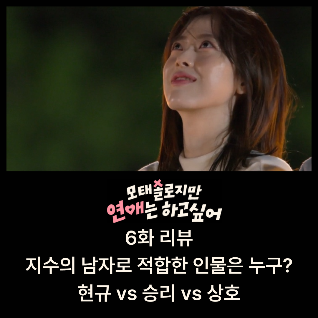 결론적으로, 모태솔로지만 연애는 하고 싶어 6화는 관계가 진전되며 선택과 거절이 명확해지고 있는 회차였습니다. 지수의 최종 선택이 누구일지는 아직 미지수지만, 지금까지의 감정 흐름과 출연자들의 반응을 바탕으로 볼 때 승리 vs 현규의 구도가 핵심이 될 것으로 보입니다. 시청자 입장에서 이들의 감정 변화를 지켜보는 것도 이 프로그램의 큰 재미 요소라 할 수 있겠습니다.